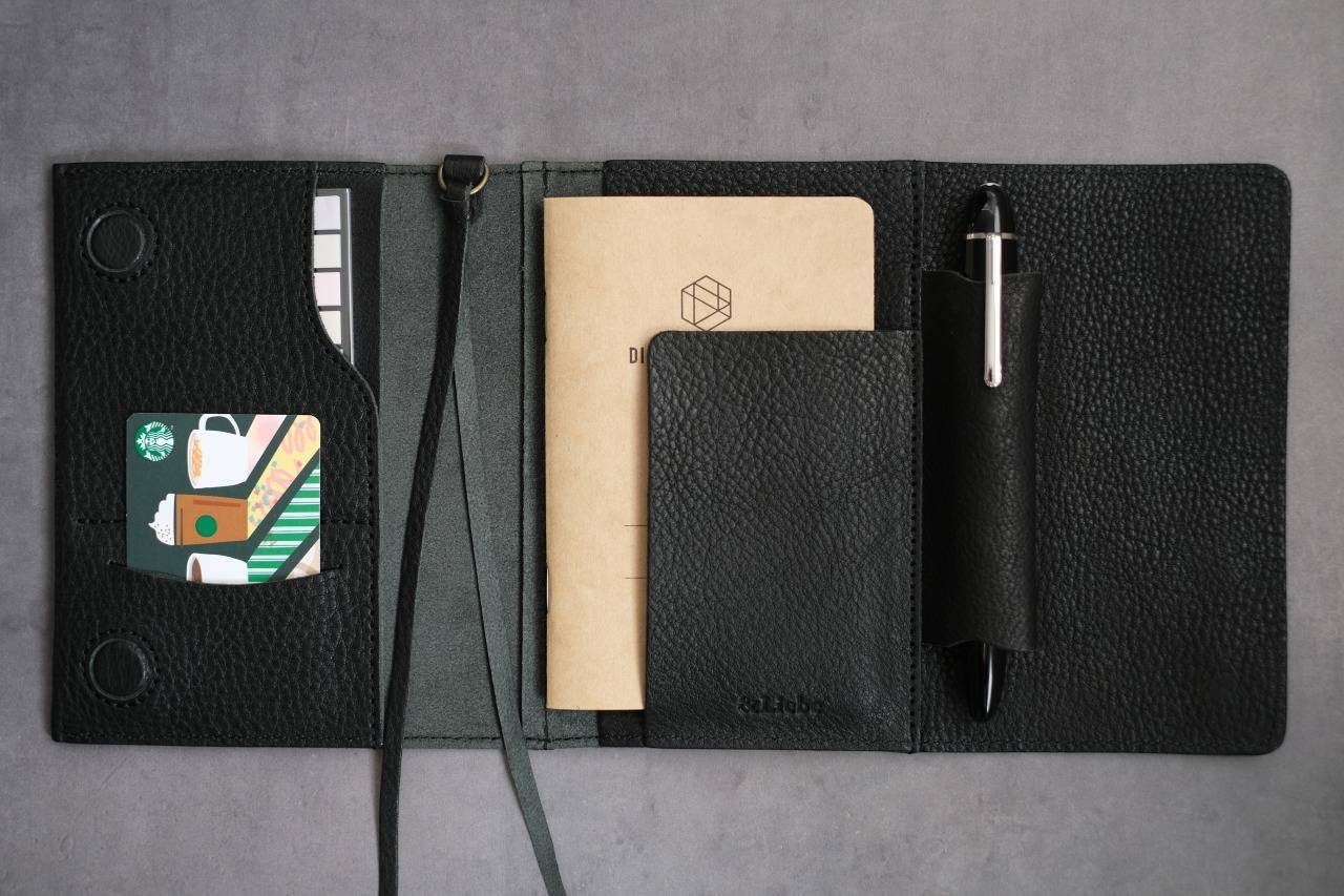 そう思い、ペンを収納できて、付箋やカードなど必要なものを収納できる手帳カバーを探しましたが、理想のものには出会えませんでした。
