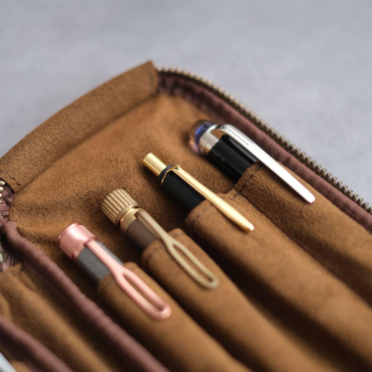 &Liebeではこれまで、モンブラン149のような大型万年筆も無理なく収納できる、3本差しタイプのジップペンケースを作ってきました。